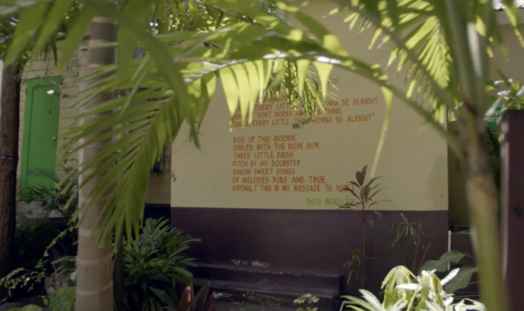 “This is the exactly spot Bob Marley stood and write, this is the exactly spot. Every morning, his duty is to get up very early, run, play football, and after that… that morning he sat right there and smoking his marijuana, meditating. And if he sat there smoking, before you make a spliff, you will make sure the herb is okay. So the seeds, you will pick them out. Sometime you throw them away, and if you throw away the seeds, sometimes birds come and pick the seeds up. And if you do that, it’s all the time he sat there and do that, so it will attract birds to know that this little Rastaman is going to come here and feed us. And then this song came into his mind, and he just wrote that beautiful song,” said Chaplin.